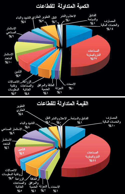 بنهاية الأسبوع الماضي يكون السوق قد حقق مكاسب منذ بداية العام بنسبة 11.37% مضيفا إلى نقاطه 696 نقطة ويأتي قطاع الصناعات البتروكيماية كأكبر القطاعات تحقيقا للمكاسب بنسبة 21.2% في حين أن أكبر القطاعات انخفاضا هو قطاع الإعلام والنشر الذي تراجع منذ بداية العام بنسبة 10.14%.