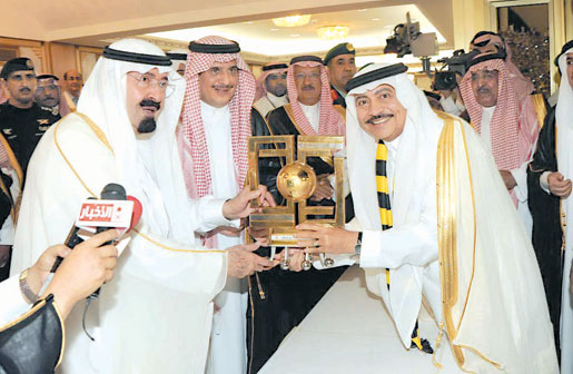 كما سلم المليك مكافأة المركز الأول ومقدارها أربعة ملايين ريال لنادي الاتحاد والميداليات الذهبية للاعبين وأعضاء الجهاز الفني والإداري بالنادي، فيما سلم - أيده الله - مكافأة المركز الثاني ومقدارها مليونان وخمسمائة ألف ريال لنادي الهلال والميداليات الفضية للاعبين وأعضاء الجهاز الفني والإداري بالنادي.