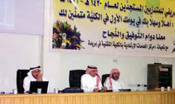تجدر الإشارة إلى أن الكلية ممثلةً بقسم الإرشاد نظَّمت أخيراً لقاءً خاصاً بالمتدربين المستجدين للفصل التدريبي الثالث من العام 1431 - 1432هـ .