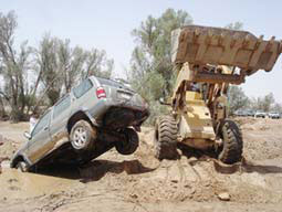 تمكن الدفاع المدني بدخنة وبمساعدة البلدية وبعض المواطنين من إنقاذ مواطن (60 عاماً) بعد أن غمرته السيول في وادي درعة بدخنة, وتعود تفاصيل الواقعة كما رواها المواطن ل(الجزيرة) أنه قام بإيقاف سيارته جوار الوادي وترجل لقطع الوادي الذي كان في البداية سهل الجريان وبعد أن وصل للمنتصف فوجئ بسرعة الماء وارتفاع منسوبها فوجد صخرة بجواره استند عليها إلا أن منسوب المياه أخذ بالازدياد فقام على الفور بالاتصال على أقاربه والذين قاموا بالاتصال على الدفاع المدني وتم الاستعانة برافعة من البلدية وبمساعدة بعض المواطنين تمكنوا من الوصول له بعد ساعتين من الحادثة, من جهة أخرى حجز الوادي عدداً من السيارات في إحدى جهاته وتم إخراج بعض منها عن طريق المواطنين والبعض الآخر عن طريق سيارة البلدية بوجود الدفاع المدني, هذا وقد ناشد الأهالي المسؤولين بسرعة دعم الدفاع المدني بدخنة بالآلات والأفراد حيث إنه بتواضع الإمكانات لديهم لا يمكن أن تؤدي الغرض وقت الحاجة لا قدر الله.