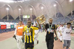 نجح فريق الاتحاد البارحة في اللحاق بركب أبطال الموسم.. وتوزعت البطولات الأربع ما بين الهلال بطل الدوري وكأس ولي العهد.. الشباب بطل كأس الأمير فيصل بن فهد.. وأخيراً الاتحاد بطل كأس الملك للأبطال.