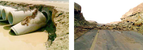 ما تزال أضرار سيول الخميس الماضي ومعاناة عدد من أهالي المراكز والقرى التي ضربتها تتكشف، فقد تسببت غزارة الأمطار والسيول بانهيار جبلي على طريق حجيلا أدى إلى إغلاق الطريق وعزل حجيلا، وعلى طريق السدرية تسبب ضيق وصغر عبارات الطريق، التي وضعت لتصريف مياه السيول، إلى الانجراف وإلحاق أضرار بالطريق.وقد تسببت تجمعات المياه وقوة السيول في انهيار سد ترابي في قرية المدارة التي حاصرتها مياه السيول من جهات عدة وشهدت القرية أوقاتا عصيبة.