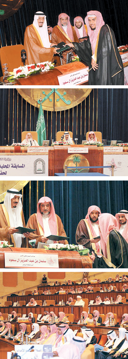 رعى صاحب السمو الملكي الأمير سلمان بن عبد العزيز أمير منطقة الرياض الليلة قبل الماضية الحفل الختامي لمنافسات الدورة الثانية عشرة للمسابقة المحلية على جائزة «سموه» لحفظ القرآن الكريم للبنين والبنات، بحضور سماحة مفتي عام المملكة رئيس هيئة كبار العلماء وإدارة البحوث العلمية