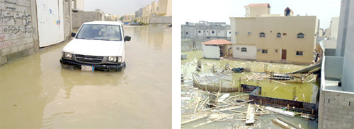 لم يدر بخلد أكثر المتشائمين أن تسبح أجزاء كثيرة من أحياء الرياض في بحيرة من الماء جراء أمطار الاثنين الماضي. كان أكثر الأحياء تأثراً حي النفل شمالاً، والذي أجلي بعض سكانه من منازلهم عندما غمرت المياه الشوارع ودخلت المنازل وارتفع منسوب المياه إلى أكثر من المتر.