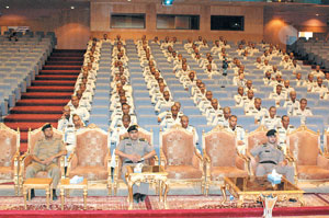 وأكد اللواء العجلان بهذه المناسبة لأبنائه الطلبة أداء الأمانة على الوجه المطلوب والمحافظة على أمن الوطن ومواطنيه والإخلاص والصدق في القول والعمل وتحقيق مبدأ العدل والرقابة الذاتية لانضباطهم وأدائهم لأعمالهم وحسن التعامل مع المواطن والمقيم واختيار الجليس الصالح وأن يكونوا لبنة خير وعطاء لزملائهم ممن سبقوهم في الحياة العملية. كما دعا لهم بالتوفيق في حياتهم العملية.