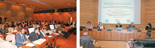 وقد شارك في الملتقى ثلاثة متحدثين هم: الدكتور تشونغ جيكون رئيس قسم الأدب واللغة العربية بجامعة بكين.. والسيدة كاتريا ستينو رئيسة قسم الثقافة بمنظمة اليونسكو.. والدكتورة هند السديري عضو هيئة التدريس بجامعة الملك سعود، وقد رأس الجلسة الدكتور ديمونيك بوديس مدير معهد العالم العربي بباريس، وقد أكد المشاركون أهمية الترجمة في تعزيز مفهوم الحوار بين الثقافات والتبادل الفكري والمعرفي بين شعوب العالم ومد جسور التواصل والوصول بالمعلومة إلى الآخر، وقد ثمَّن المشاركون دور جائزة خادم الحرمين الشريفين العالمية للترجمة في إحداث حراك معرفي وثقافي عالمي يهدف إلى تعزيز مفهوم الحوار بين الثقافات، كما ناقش المشاركون أهمية الوسائل الفاعلة في دعم نشاط الترجمة والنهوض بمستواها من خلال عدة قنوات فكرية وجهات تعليمية.