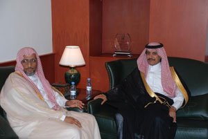 استقبل سمو محافظ المجمعة الأمير عبدالرحمن بن عبدالله بن فيصل أمس في مكتبة بديوان المحافظة رئيس هيئة التحقيق والادعاء العام الشيخ محمد آل عبدالله ورئيس فرع الهيئة بمنطقة الرياض الشيخ عبدالوهاب السديري حيث كان يرافقهما رئيس دائرة التحقيق والادعاء العام بمحافظة المجمعة الشيخ عبدالرحمن الأحيدب وأعضاء الهيئة بالدائرة الشيخ عبدالعزيز الصبيح ومحمد المنقور حيث تم خلال اللقاء مناقشة العديد من الأمور أهمها العلاقات بين الجهات الأمنية ومحاولة إزالة جميع العقبات التي تعترض طريق مصير القضايا في المحافظة حيث كان معاليه قد قام بزيارة لدائرة التحقيق والادعاء العام بالمحافظة.