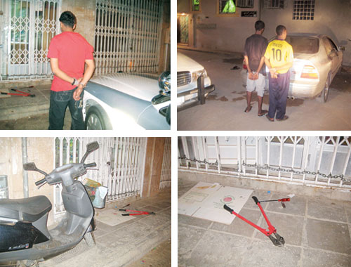 وعلى صعيد آخر تمكنت فرق دوريات الأمن من القبض على جان كان يقوم بقص أقفال المحال التجارية حيث لاحظت إحدى الفرق شخصاً في ساعة متأخرة من الليل يستقل دراجة نارية وعند الاقتراب من الشخص ولى هارباً فتمت متابعته والقبض عليه، وبعد الرجوع لموقع الشخص وجد أسواق تجارية مقصوصة الأقفال ومتعرضة للسرقة ولكن الجاني لم يتمكن من الدخول لداخل الأسواق حيث وجدت آثاره عبارة عن مقص حديدي قام بقص جزء من الباب الخارجي للسوق ودراجة نارية وسكين هاجم بها أحد أفراد الدوريات لكنه لم يتمكن من إلحاق الأذى به، وبعد التأكد من هوية الجاني اتضح أنه مخالف لنظام الإقامة في البلاد سلم لمركز شرطة السويدي.