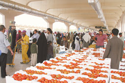 وكان الاقبال يوم أمس على الفواكه الموسمية -الحبحب والشمام والخوخ-إاضافة إلى بعض المحاصيل الأخرى حيث كانت الأسعار معقولة ومتابعة فريق اشرافي من الإدارة العامة للأسواق والراحة والسلامة وتواجد عدد من الفرق الأمنية والمرورية.