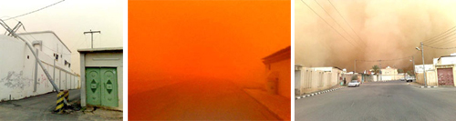 وبقي المواطنون وأطفالهم في منازلهم وقت الظهر محتمين بحرارة الجدران وعدم استطاعتهم الخروج من المنازل لكثافة الأتربة والغبار واستقبل مستشفى بقعاء العام عدداً من حالات الربو من شدة الغبار.