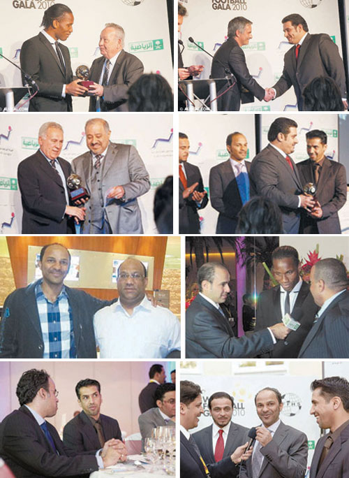 نجم تشيلسي اللاعب الإيفواري ديديه دروجبا كان أحد نجوم الحفل.. تحدثت معه وأكد بأنه سعيد على هذا التكريم وقال أتمنى أن أواصل حضوري بجوائز سنوية ذات قيمة عالية كهذا التكريم وأضاف كان الحفل رائعا واستمتعت بفقراته.. وتحدث دروجبا عن فوزهم بالدوري الإنجليزي وقال: إنه كان صعبا للغاية وفزنا في الوقت المناسب مشيرا إلى أنه يركز حاليا على نهائي الكأس أمام بورتسموث يوم السبت المقبل.