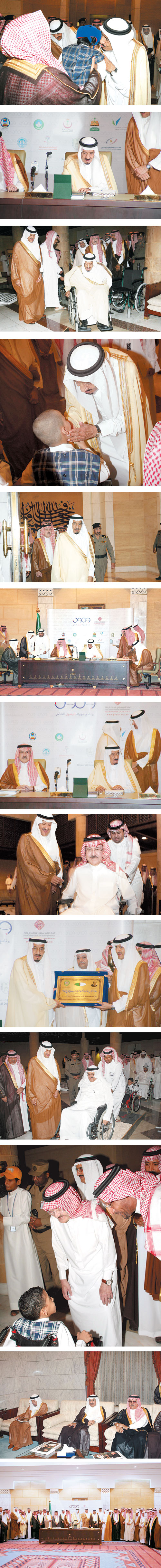 رعى صاحب السمو الملكي الأمير سلمان بن عبدالعزيز أمير منطقة الرياض ومؤسسة مركز الأمير سلمان لأبحاث الإعاقة صباح أمس توقيع اتفاقيات تعاون بين مركز الأمير سلمان لأبحاث الإعاقة والعديد من الجهات الحكومية لتطبيق برنامج الوصول الشامل الذي ينفذه مركز الأمير سلمان لأبحاث الإعاقة بدعم من وزارة النقل وذلك بقصر الحكم وبحضور صاحب السمو الملكي الأمير سطام بن عبدالعزيز نائب أمير منطقة الرياض وصاحب السمو الملكي الأمير سلطان بن سلمان رئيس مجلس إدارة مركز الأمير سلمان لأبحاث الإعاقة وعدد من أصحاب السمو والمعالي والفضيلة ورجال الأعمال والقطاعات الحكومية والشركات والمؤسسات.