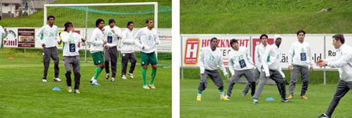 واصل منتخب المملكة الأول لكرة القدم استعداداته في معسكره الحالي بمدينة لينقن فيلد النمساوية التي وصلها يوم أمس الأول. وأدى المنتخب تدريبا صباحيا أمس على ملعب المركز الرياضي اشتمل على عدد من تدريبات الإحماء ثم تدريبات لياقية إضافة لعدد من التدريبات الفنية والتكتكية وخاصة التركيز على تسليم واستلام الكره والتمركز داخل الملعب وقد شهدت التدريبات حماس من اللاعبين رغم ظروف برودة الطقس التي تسود مدينة لينقن فيلد.