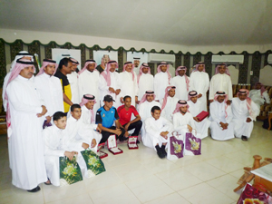 كما تم تكريم رئيس لجنة الحكام الرئيسية لكرة القدم عمر المهنا ومدير مكتب رعاية الشباب خالد العقيل ومحمد المرزوق وراعي الحفل معالي الشيخ فيصل الشهيل.
