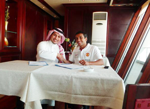 وقد جرت مراسم توقيع العقد مع النجم الشلهوب في مطعم الإنتركوت كافيه دي باريس في برج الفيصلية في مدينة الرياض، ومثل شركة الصافي في التوقيع مدير العلاقات العامة الأستاذ عمر بن إبراهيم المحيميد.