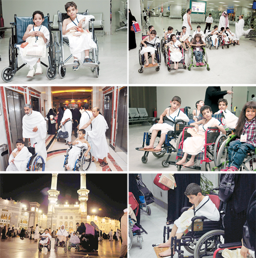 وسط إعجاب وتشجيع زوار الحرم المكي اختلطت الدموع بضحكات عشرين طفلاً معاقاً وهم يدخلون لأول مرة ساحة الحرم المكي الشريف، يراقبون عيون الجميع من حولهم، وهي تحتضنهم في دهشة وإعجاب وتشجيع تتساءل عن سر هؤلاء الأطفال الذين يرتدون ملابس الإحرام في طريقهم لأداء مناسك العمرة على مقاعدهم المتحركة!!