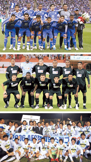 الهلال والشباب (السعودية) والغرافة (قطر) وزوباهان (إيران) وبوهانغ ستيلرز وسيونغنام ايلهوا وتشونبوك موتورز وسوون بلو وينغز (كوريا الجنوبية).