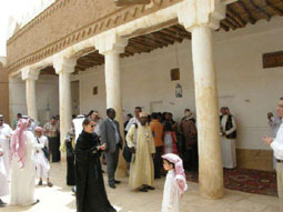 قام أكثر من (100) شخصية ضمن ضيوف المملكة المشاركين بالمؤتمر الدولي الأول للتراث العمراني بزيارة إلى محافظة المجمعة.. وقد كان في استقبالهم عند بيت الربيعة الأثري (متحف المجمعة) عبد الرحمن بن عيسى الجساس المدير التنفيذي لجهاز السياحة في منطقة الرياض وفهد الربيعة مدير مكتب الآثار والمتاحف بالمجمعة وعدد من مسؤولي الهيئة العامة للسياحة والآثار.. حيث قدم الجساس نبذة عن المواقع الأثرية والتراث وجهود الهيئة في الحفاظ عليها وإعادة ترميمها.. بعد ذلك قدم الربيعة نبذة عن متحف المجمعة وما يحتويه من آثار.. وقد تجول الوفد بأرجاء المتحف وأبدوا إعجابهم الشديد بما شاهدوه، بعدها توجه الجميع إلى حفل الشاي المعد لهم بالصالة الرئيسة بالمتحف.. ثم توجه الوفد إلى المنطقة المركزية بالوسط التاريخي للبلدة القديمة.. حيث زاروا وقف الملك عبدالعزيز ومدرسة الصانع والأعمال الجارية لحملة: لا يطيح.. حيث قدم خالد إبراهيم المزيني موجزاً عن أهداف الحملة والمباني التراثية التي تم ترميمها، بعدها غادر الوفد متوجهاً لمحافظة الغاط ومركز أشيقر لزيارة القرية التراثية.