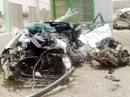لقي شاب في مقتبل العمر ومقيم يرافقه فجر أمس الأحد مصرعهما في حادث مروري مروع على طريق الملك عبد العزيز بمحافظة المزاحمية بسبب السرعة الزائدة عقب انحراف سيارتهم التي يستقلونها من نوع (أفالون) واصطدامها بإحدى أعمدة الكهرباء بجانب الطريق مما أدى إلى انشطارها ووفاة الشاب والمقيم في موقع الحادث. وباشرت فرق المرور والدفاع المدني والهلال الأحمر موقع الحادث حيث نقل جثمان المتوفين لمستشفى المزاحمية العام.