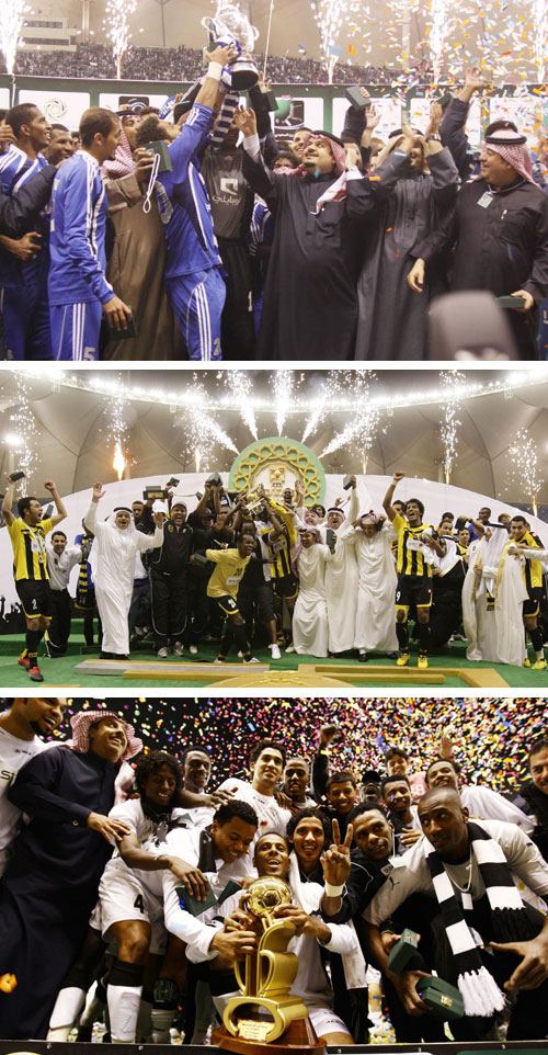 للعام الثاني على التوالي استطاع الثلاثي الهلال والاتحاد والشباب تدوين أسمائهم ضمن قائمة الشرف للبطولات السعودية بعدم خروج نطاق البطولات الرسمية عن منشآتهم حتى وصل الأمر في بعض البطولات إلى سيطرة هذه الفرق على الصدارة والوصافة معاً دون منح الآخرين حق المنافسة على أحدهم.