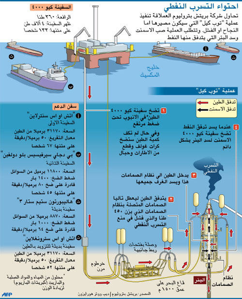 تجري الحكومة الأمريكية استعدادات لمواجهة كارثة تستمر شهورا في خليج المكسيك عقب إعلان فشل محاولة أخيرة لشركة بريتش بتروليوم لوقف تدفق نفطي من أحد الآبار. كما حذرت الحكومة الأمريكية أن جهود «بريتش بتروليوم» لوقف تدفق النفط يمكن أن تزيد من سوء الوضع. وقال كارلو برونر- مستشار
