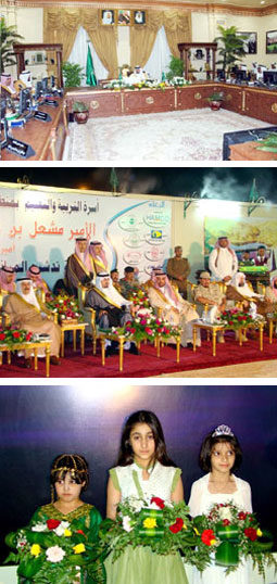 ثم أردف سمو أمير منطقة نجران قائلاً: وبمناسبة زيارة فريق مؤسسة الملك عبدالله بن عبدالعزيز لوالديه للإسكان التنموي لمنطقة نجران فإنه يسرني أن أرفع باسمي وباسم كافة أهالي منطقة نجران خالص الشكر والتقدير لمقام سيدي خادم الحرمين الشريفين وإلى سمو ولي عهده الأمين بخالص الشكر والتقدير على الاهتمام المتواصل بأبنائهم المواطنين في شتى أرجاء البلاد وحرصهم على العمل الخيري الإنساني النبيل الذي يدل على التكافل الاجتماعي الذي حث عليه ديننا الإسلامي الحنيف، بعد ذلك تم استعراض ومناقشة العديد من الموضوعات التنموية المدرجة على جدول أعمال الجلسة. من جهة ثانية رعى صاحب السمو الملكي الأمير مشعل بن عبدالله بن عبدالعزيز أمير منطقة نجران مساء أمس الأول الأحد حفل تدشين ووضع حجر الأساس لعدد من المشروعات التعليمية الجديدة التي فاقت تكلفتها (240) مليون ريال، كذلك تكريم الطالبات المتفوقات للعام الدراسي 1430هـ بإدارة التربية والتعليم للبنات بالمنطقة وذلك بمقر الحفل الكائن بضيافة إدارة التربية والتعليم للبنات بحي الفهد بنجران. وكان في استقبال سموه مدير عام التربية والتعليم للبنات بالمنطقة سالم الدوسري ومدير عام التربية والتعليم للبنين علي الشمراني ومساعديهم وعدد من مديري الدوائر الحكومية ومنسوبي التربية والتعليم بالمنطقة، حيث تفضل سموه فور وصوله بإزاحة الستار عن اللوحة التذكارية لتنطلق بعدها فقرات الحفل الخطابي المعد بهذه المناسبة التي بدأت بالقرآن الكريم ثم كلمة لمدير عام التربية والتعليم للبنات بالمنطقة سالم بن محمد الدوسري رحب فيها بسموه وبالحضور وتحدث خلالها عن النهضة التعليمية التي تشهدها المملكة كافة ونجران خاصة في ظل حكومتنا الرشيدة وعلى رأسها خادم الحرمين الشريفين وولي عهده الأمين والنائب الثاني -رعاهم الله- وسمو وزير التربية والتعليم الأمير فيصل بن عبدالله بن محمد آل سعود، مشيداً بجهود صاحب السمو الملكي الأمير مشعل بن عبدالله أمير منطقة نجران ودعمه المتواصل للتعليم في المنطقة مما كان له الأثر الكبير في إحداث نقلة نوعية في هذا القطاع تلاها قصيدة ترحيبية للشاعرة فلوة بنت حسن قوير، وذلك عبر بث مباشر مع الحفل من مقر قاعة الأميرة تاضي الثانية، جاء بعدها كلمة الإدارات والأقسام النسائية ألقتها نيابة عنهن فاطمة العلياني، قدم بعدها أطفال الروضة أنشودة ترحيبية بسموه تفضل بعدها سموه بتدشين المشروعات التعليمية الجديدة بتعليم بنات نجران تلاها عرض لفيلم وثائقي تحدث عن إنجازات الإدارة والمشروعات التي تم وضع حجر الأساس لها، بعد ذلك تفضل أمير منطقة نجران بتكريم أولياء أمور الطالبات المتفوقات اللاتي كرمن بدورهن ضمن قاعة الأميرة تاضي الثانية.