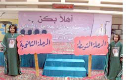 وحضرت الحفل مساعدة مدير إدارة التربية والتعليم شيخة السليمان ورئيسة قسم الإرشاد وفاء النفيسة ورئيسة قسم التربية الخاصة منيرة العمران ومشرفة الإرشاد فوزية السليمان وجمع غفير من الأمهات.