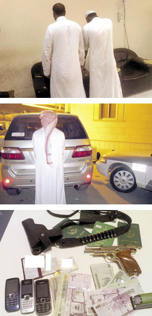 وكانت غرفة دوريات الأمن بالرياض قد تلقت بلاغا من أحد العمالة الوافدة يفيد خلاله أن شخصاً يستقل سيارة من نوع جيب موديل 2009 اللون فضي قام بالدخول عليه داخل سكنه بحي العود وتهديده بسلاح ناري نوع مسدس وحاول السلب منه، وعندما لم يتمكن من ذلك ارتكب الفرار على الأقدام تاركاً السيارة في الموقع وقام بإعطاء السلاح لأشخاص من جنسية عربية بغية إخفائه لديهم.