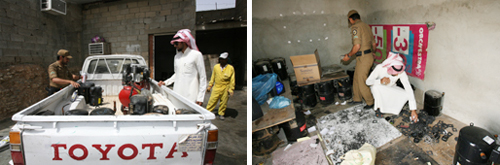 وكان بلاغٌ من قبل مندوب هيئة الأمر بالمعروف والنهي عن المنكر قد قاد الحملة لمداهمة استراحة بشرق الرياض، حيث لجأت العمالة لوضع سياج حديدي وقطع زجاج أعلى السور لمنع الدخول للموقع، وقد تم القبض على العمالة التي تقوم بتجديد وبيع كمبروسرات المكيفات والثلاجات وعثر لديهم على (500) ألف إستكر تحمل شعارات لشركات عالمية مشهورة بهذا المجال وضبط أكثر من (700) كمبروسر مكيف وثلاجة جاهزة للبيع.. وعثر على كميات كبيرة من الكمبروسرات متهالكة في طريقها للغش التجاري.. بعد إعادة تجديدها حسب طريقة العصابة الباكستانية.