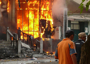 وقالت شاهدة من أن النيران تشتعل في حي شيريوموشكي الذي يسكنه الأوزبك. وأضافت أنها رأت اندلاع اشتباكات بين القرغيز والأوزبك العرقيين وقيام الكثير من الأشخاص بإقامة الحواجز وإضرام حشد النيران في اثنين من المطاعم الكبيرة وسوق.
