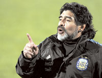ويواجه مارادونا انتقادات لأنه يثق في أن الفوز بكأس العالم يعتمد فقط على الروح القتالية.. بعدما قال في حديث تلفزيوني مؤخراً: «يجب أن يلعب اللاعب بكل حماس ويقدم حياته ثمناً لذلك»: وعندما تولى مارادونا المسؤولية بعد استقالة الفيو باسيلي في أواخر 2008 اعتقد كثيرون من مشجعي الأرجنتين بعد زوال صدمة القرار أنه يملك الشخصية اللازمة لضخ روح الفوز في أوصال الفريق.. كما قرر خوليو جروندونا رئيس الاتحاد الأرجنتيني تعيين كارلوس بيلاردو مدرب الفريق الفائز بكأس العالم 1986 مديراً فنياً للمنتخبات الوطنية في خطوة بدا أنها لمنح مارادونا الذي يفتقر للخبرة مساندة تدريبية.. لكن مارادونا الذي يفخر بنفسه يحب تنفيذ كل شيء بطريقته.. ولم يكن يريد الحصول على نصائح أو مساعدة من بيلاردو ويحيط نفسه دائماً بمن يوافقونه في الرأي فقط.. وتستطيع الأرجنتين الوصول لأبعد حد في كأس العالم لكن من الممكن أن ينجح أحد المنتخبات المنافسة والمنظمة خططياً في الإطاحة بفريق المدرب مارادونا في مرحلة مبكرة من البطولة.. ويحاول الجميع التكهن برد فعل مارادونا إذا ما خرج الفريق مبكراً من كأس العالم.. لكن المدرب مرتبط بتعاقد مع الأرجنتين حتى كأس أمريكا الجنوبية التي ستقام في بلاده العام القادم.