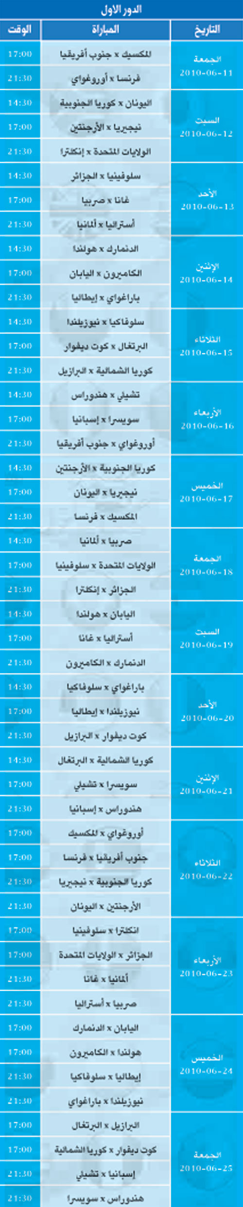 جدول نهائيات كأس العالم بتوقيت المملكة العربية السعودية