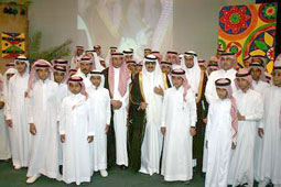 رعى صاحب السمو الأمير عبدالله بن عبدالعزيز بن مساعد آل سعود أمير منطقة الحدود الشمالية، بحضور صاحب السمو الأمير منصور بن عبدالله بن مساعد آل سعود وفضيلة رئيس محاكم المنطقة الشيخ عبدالسلام الرشيد، أمس الحفل الذي نظمته الإدارة العامة للتربية والتعليم بالمنطقة بمناسبة اختتام الأنشطة الطلابية للعام الدراسي 1430 - 1431هـ. وفور وصول سموه قام بقص الشريط إيذاناً بافتتاح المعرض المصاحب. بعد ذلك شرَّف سموه الحفل المسرحي الذي ألقى فيه المدير العام للتربية والتعليم عبدالرحمن الروساء كلمةً، أعرب فيها عن شكره برعاية سموه للحفل. بعد ذلك أُلقيت كلمة جماعية للطلاب، ثم أوبريت وطني بعنوان (رموز الوطن). بعد ذلك تفضل سمو أمير المنطقة بتسليم الشهادات التقديرية والدروع على عدد من الطلاب، كما شمل التكريم تكريم عدد من الجهات المتعاونة. وقد تقدَّم المكرمين صاحب السمو الأمير منصور بن عبدالله بن مساعد آل سعود. وفي نهاية الحفل تشرَّف المدير العام للتربية والتعليم بتقديم درع تذكارية لسموه بهذه المناسبة.