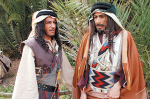 يشارك الممثل السعودي عبدالمحسن النمر (يسارا) في بطولة المسلسل البدوي (أبواب الغيم) من خيال وأشعار محمد بن راشد آل مكتوم، وسيناريو وحوار عدنان العودة، وإخراج حاتم علي. وقد تقرر عرضه ضمن مسلسلات شهر رمضان المقبل على قناة دبي الفضائية. |