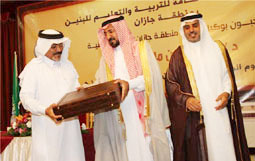 وقد رعى حفل التكريم وكيل إمارة منطقة جازان المساعد للشؤون الأمنية الدكتور حامد الشمري وبحضور مدير عام تعليم جازان وضيوف الحفل من مدراء الإدارات الحكومية ومساعدي المدير العام للشؤون التعليمية والمدرسية وعدد من مدراء الإدارات ومكاتب التعليم والمشرفين التربويين بالمنطقة.