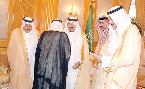 استقبل نائب خادم الحرمين الشريفين صاحب السمو الملكي الأمير سلطان بن عبدالعزيز آل سعود في الديوان الملكي بقصر السلام أمس أصحاب السمو الملكي الأمراء وكبار المسؤولين في الديوان الملكي وديوان سمو ولي العهد وديوان رئاسة مجلس الوزراء وجمعاً من المواطنين الذين قدموا للسلام على سموه رعاه الله.