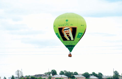 حلّق منطاد «ملك الإنسانية» في سماء موسكو ضمن مهرجان وكأس روسيا الدولي المفتوح في دورته الثالثة عشرة المقام حالياً في مدينة فيكيلوكي الروسية، إلى جانب مشاركين من روسيا ودول أوروبية، حاملا علم البطولة وشارة الانطلاق وفقا لاختيار اللجنة المنظمة، إلى جانب ما حمل المنطاد من رسالة المملكة العربية السعودية السامية في التواصل مع شعوب العالم في سبيل خدمة الإنسانية.