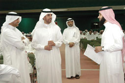 التقى وكيل الجامعة للدراسات والتطوير وخدمة المجتمع الدكتور أحمد الشعيبي في قاعات الاختبار في رحاب جامعة الملك فيصل بطلبة برنامج التعليم المطور للانتساب حيث أعلن انتهاء الاختبارات التي تمت وفق آلية تنظيمية تكللت بالتوفيق والنجاح، وقد صرح عميد عمادة التعلم الإلكتروني والتعليم عن بعد الدكتور عبد الله النجار أن عدد المتقدمين لاختبارات البرنامج بلغ (11) ألف طالب وطالبة ، حيث قدم البرنامج للمنتسبين فيه خدمة أداء الاختبارات من خلال 36 مركزا في جميع أنحاء المملكة، وأفاد الدكتور النجار بأن موعد إعلان النتائج سيتم خلال عشرة أيام بعد نهاية الاختبار ، وأكد سعادته أن آلية التصحيح لأوراق الإجابة تتم إلكترونيا ، وحول السؤال عن الإجراءات المترتبة على عدم حضور بعض المنتسبين لأداء الاختبار بعذر ، أفاد بأنه يوجد في موقع الجامعة برنامج خاص للطلاب الذين لديهم أعذار ، وذلك من خلال الدخول على بوابة البرنامج لدراسة الأعذار ثم إفادة المنتسبين من خلال رسائل الجوال أو البريد الإلكتروني .وقال: إن موعد التقديم للفصل الدراسي الأول 1431هـ - 1432هـ سيكون في 5-9-1431هـ وذلك للقبول في برامج الانتساب الذي تقدمه كلية الآداب ، والبرنامج الذي تقدمه كلية التربية في تخصص التربية الخاصة ، والبرنامج الذي تقدمه كلية إدارة الأعمال في تخصص إدارة الأعمال ، علماً بأن شروط القبول متاحة في الموقع الإلكتروني للجامعة, وأشار إلى أن العمادة تعمل على دراسة طرح تخصصات نوعية جديدة حرصاً من الجامعة في خدمة المجتمع .