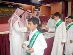 وبدأ الحفل بالقرآن الكريم، ثم أقيمت التصفيات النهائية لمسابقة التلاوة والترتيل لطلاب المرحلة الابتدائية والمتوسطة والثانوية، تخلل ذلك وقفات تكريمية للحفظة والمتخرجين من حلقة القاعدة النورانية وطلاب حلقات التلقين، كما شمل التكريم المتميزين من معلمي الحلق.