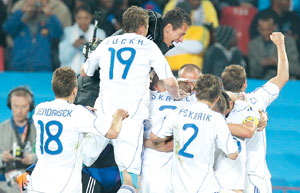 بدد المنتخب السلوفاكي لكرة القدم آمال نظيره الإيطالي في الدفاع عن لقبه العالمي وأطاح به من بطولة كأس العالم 2010 بجنوب إفريقيا بعدما تغلب عليه 2/3 أمس الخميس في مباراة مثيرة بالجولة الثالثة من مباريات المجموعة السادسة بالدور الأول للبطولة.