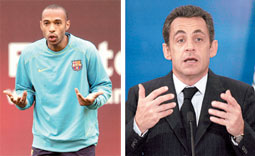 عقد الرئيس الفرنسي نيكولا ساركوزي اجتماعا امس الخميس مع تييري هنري قائد المنتخب الفرنسي الاول لكرة القدم بعد الخروج المهين للمنتخب الفرنسي من نهائيات كأس العالم 2010 بجنوب افريقيا اثر تذيله فرق المجموعة الأولى.