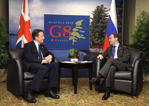 تعتزم روسيا وبريطانيا إنهاء فترة التجمد التي شهدتها العلاقات بين البلدين منذ سنوات. فقد اتفق الرئيس الروسي دميتري ميدفيديف ورئيس الوزراء البريطاني الجديد ديفيد كاميرون على بداية عهد جديد في العلاقات بين بلديهما، وذلك على هامش قمة مجموعة الثماني في كندا. |