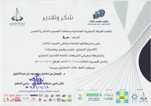 بدعوة كريمة من صاحب السمو الملكي الأمير الدكتور فيصل بن مشعل آل سعود، شاركت هرفي في ملتقى الشباب الثالث (الامتياز التجاري... تجارب وفرص وتحديات) الذي أقامته الغرفة التجارية الصناعية في منطقة القصيم.