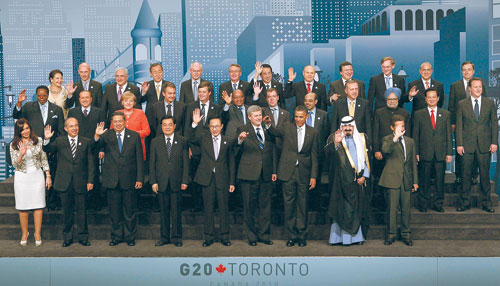 استدعت قمة مجموعة العشرين الرابعة التي اختتمت أمس الأول في تورنتو بكندا بمشاركة خادم الحرمين الشريفين الملك عبدالله بن عبدالعزيز عصرا جديدا من التقشف التي سيشهد خفض الحكومات للإنفاق العام بما يقدر بمئات المليارات من الدولارات. ومن الواضح أن المخاوف التي أثارتها كل من الولايات المتحدة والهند والبرازيل والأرجنتين من أزمة جديدة للديون السيادية تسببت في اجتياح الأسواق المالية لمخاوف أدت إلى خفض الإنفاق وبالتالي إمالة الاقتصاد العالمي إلى الركود. وقلصت تلك المخاوف من قدرة الدول الاقتصادية الكبرى على الاستجابة لمطالب زيادة الإنفاق، مما تسبب في خلافات لم تنجح قمة تورنتو في حلها، فاتجهت بمطالبة الدول الناشئة بوضع سياسات لزيادة الإنفاق ولم تنجح كذلك. وتصاعدت مناقشات القادة على العجز من خلال تقرير صارخ حذر فيه صندوق النقد الدولي من عواقب الفشل في معالجة الديون المتزايدة في معظم اقتصادات الدول الصناعية المتقدمة مما يؤدي إلى تباطؤ النمو وارتفاع معدلات البطالة والعجز التجاري. ودعا البيان الختامي لقمة العشرين في تورنتو الاقتصادات المتقدمة إلى خفض العجز بحلول عام 2013 والعمل على خفض الدين الحكومي نسبة إلى الناتج المحلي الإجمالي بحلول عام 2016. وتوقع قادة مجموعة العشرين زيادة الإنتاج العالمي بمعدل 400 مليار في حال ممارسة سياسة اقتصادية متفق عليها، إضافة إلى توفير 52 مليون فرصة عمل جديدة وإنقاذ 90 مليون شخص في دول العالم من الفقر. كما دعا البيان الختامي الدول الكبرى إلى اتخاذ إجراءات لزيادة المدخرات الوطنية مع المحافظة على انفتاح الأسواق وتعزيز القدرة التنافسية للصادرات. كما دعت قمة العشرين الدول التي تحقق فوائض مالية إلى إجراء إصلاحات لخفض اعتمادها على الطلب الخارجي، وزيادة التركيز على المصادر المحلية للنمو. وفيما يتعلق بإصلاح القطاع المالي دعت قمة تورنتو إلى بناء نظام أكثر مرونة مالية من شأن الحد من المخاطر ودعم نمو اقتصادي قوي ومستقر من خلال العمل في تناسق لتحقيق التزامات لإصلاح القطاع المالي التي قدمت في قمم واشنطن ولندن وبيتسبرغ وفق أطر زمنية متسارعة. كما أقرت القمة الإسراع في تنفيذ تدابير قوية لتحسين الشفافية والرقابة التنظيمية لصناديق التحوط ووكالات التقييم الائتماني بطريقة متسقة دوليا وغير تمييزية، إضافة إلى زيادة فعالية المراقبة والإشراف. كما وافقت القمة على زيادة القوة التصويتية للدول النامية والبلدان التي تمر بمرحلة انتقالية. وطالبت وزراء المالية ومحافظو البنوك المركزية بإعداد خيارات السياسة العامة لتعزيز شبكات الأمان المالية العالمية والنظر فيها في قمة العشرين المقبلة في سيؤول بكوريا الجنوبية بهدف بناء عالم أكثر استقرار ومرونة في النظام النقدي الدولي. وأقرت القمة تمديد فترة عدم تطبيق إجراءات الحماية الجمركية في مجال التجارة والاستثمارات. ولم يتطرق البيان الختامي إلى مطالب الولايات المتحدة وبريطانيا فرض ضريبة على عمل المصارف خاصة بعد معارضة الصين وروسيا وكندا وعدد من الدول على تلك المطالب. ومن المقرر عقد القمة المقبلة في سيؤول بكوريا الجنوبية، فيما تعقد القمة السادسة في المكسيك والسابعة في فرنسا.