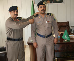 صدرت الموافقة السامية الكريمة بترقية رئيس قسم السلامة بإدارة الدفاع المدني بمحافظة الرس النقيب عبدالله العتيبي إلى رتبته الجديدة «رائد» حيث قلد مدير الدفاع المدني بالرس العقيد سالم النوشان بمكتبه النقيب العتيبي رتبته الجديدة بحضور عدد من الضباط وقد عبر الرائد العتيبي عن شكره وتقديره لولاة الأمر على هذه الثقة الغالية التي تدفعه لتقديم مزيد من العطاء والإخلاص وتحقيق تطلعات المسؤولين.