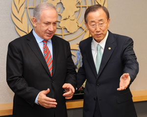 التقى رئيس الوزراء الإسرائيلي بنيامين نتنياهو الأربعاء في نيويورك الأمين العام للأمم المتحدة بان كي مون الذي يدعو لرفع الحصار عن قطاع غزة وإجراء تحقيق دولي في الهجوم على سفينة تركية ضمن أسطول للمساعدات الإنسانية ووقف الاستيطان. ولم يدل نتنياهو بأي تصريح بعد اللقاء الذي استمر 45 دقيقة. واكتفى مكتب الأمين العام بالقول إن الرجلين بحثا عملية السلام والحصار على غزة والوضع في جنوب لبنان بشكل خاص.