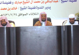 وشارك في الندوة الشيخ الدكتور واصل المذن والشيخ عبد الباقي آل شيخ مبارك، وأدار الندوة الشيخ خالد العيد، وذلك في قاعة كلية الشريعة والدراسات الإسلامية بالأحساء. وتطرق المشاركون في الندورة إلى التعريف بالوسطية وأهميتها والأدلة عليها، وشمولية الوسطية والاعتدال لكل الأطراف وأهميتها في تحقيق المصالح وتعديل السلوك، وفي تحقيق معنى الوسطية في كل شيء باعتبار أنها منهج من مناهج حياتنا، وإن الإسلام دين الوسطية والاعتدال، وذكروا شواهد من حياة السلف في الوسطية والاعتدال وفي التغيير نحو الأفضل. واختتم اللقاء بكلمة ضافية للشيخ أحمد الهاشم مدير الإدارة أكد فيها أن الوسطية أو الوسط لايأتي إلا في محاسن الأمور وأن الوسطية هي أكمل منهج في الأخلاق والعقيدة والتشريع، وأعرب عن الشكر وختمها للمشاركين على استجابتهم ومشاركتهم، كما شكر جميع الحضور من أصحاب الفضيلة.