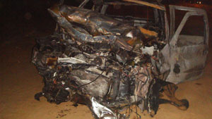 توفي شخص فيما أصيب اثنان آخران بإصابات مختلفة؛ وذلك في حادث تصادم شنيع وقع بين سيارتين وجهاً لوجه على طريق الدرعية بصامطة. وقد أدت قوة الارتطام لاشتعال النيران في كلتا السيارتين وقد أتت عليهما بالكامل وحولتهما النيران إلى كومة حديد.