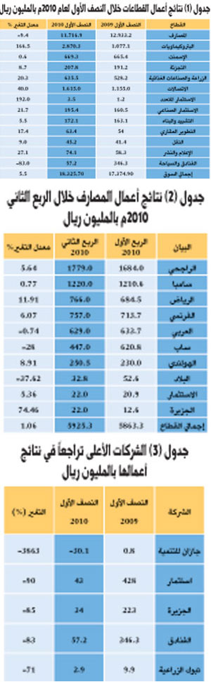 المصدر: موقع أرقام (محسوبة بناء على الشركات التي أعلنت عن نتائج أعمالها حتى صباح الأربعاء 14 يوليو 2010م)..