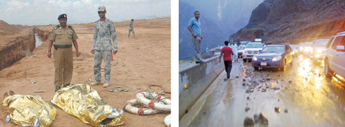 اضطر العديد من السكان العابرين إلى مركز عثوان وقرى آل سعيد بمحافظة الداير شرق جازان إلى النوم في العراء على جانب الطريق، والبعض واصل الصعود إلى الجبل سيرا على الأقدام، بعد أن وقعوا في كماشة اللاصعود واللاعودة حين منعتهم الانهيارات الصخرية من الصعود إلى قراهم الجبلية، واحتجزتهم السيول بعدم القدرة على